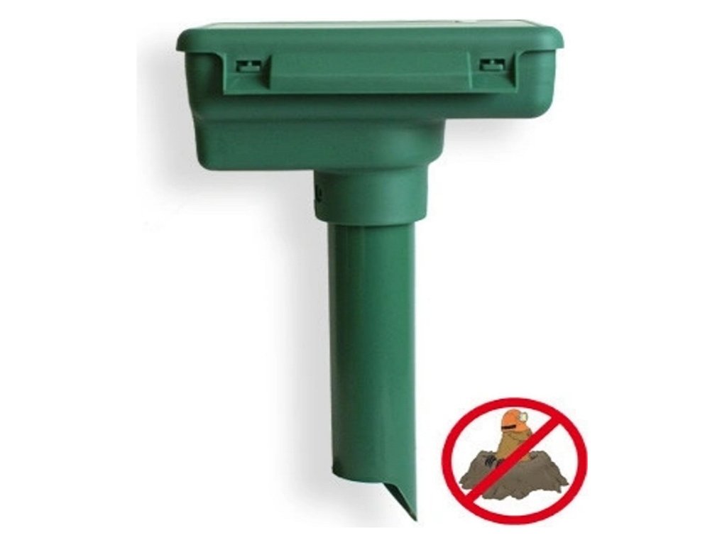 V případě odpuzovače krtků není rozhodující velikost, jak by se dalo předpokládat, ale výkon zabudovaného bzučáku. Zvuky, které vydává, jsou pro hrabající se zvířata nepříjemné. Koneckonců spoléhají na svůj jemný sluch ve svých temných chodbách, když loví hmyz a žížaly. Při výměně beterií není nutné vyjmout plašič ze země. Stačí uvolnit dvě svorky, zvednout víčko a vložit 4 baterie typu D. Přístroj po vložení baterií automaticky vydává signály každých 5 vteřin.