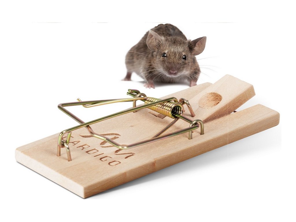 Dřevěná past o rozměru: 9,5 x 5 x 2 cm.