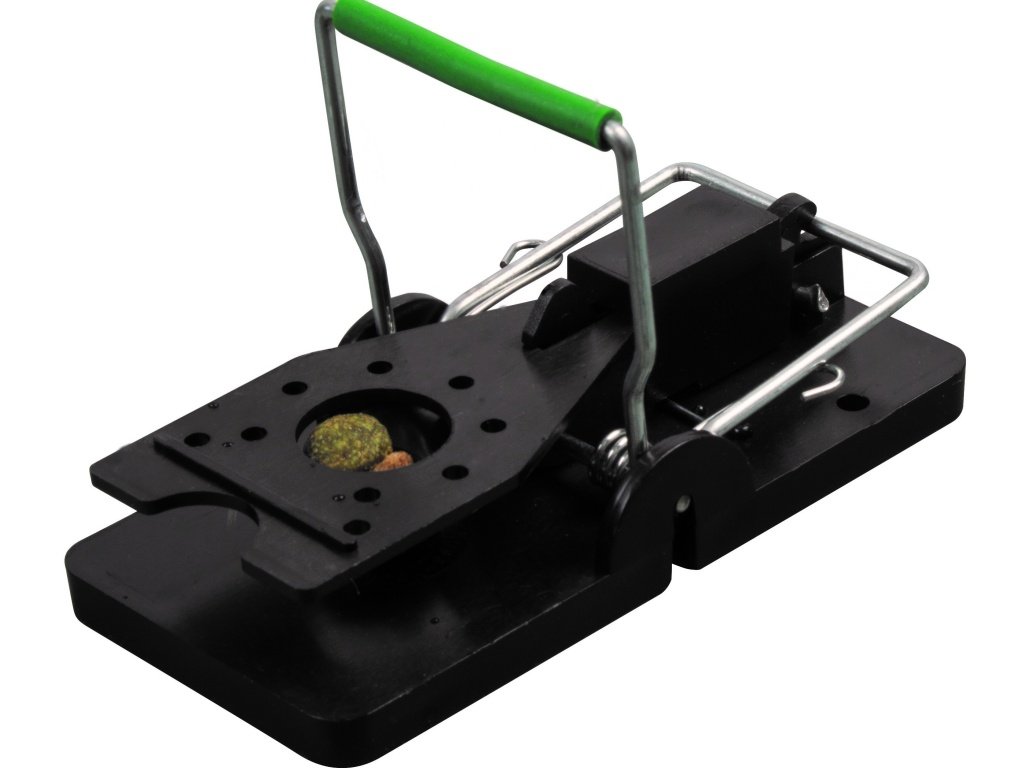 Pozornost! Nejprve naplňte soutisk pomocí návnady, pak past položte na podlahu a stiskněte držadlo dvěma prsty!
