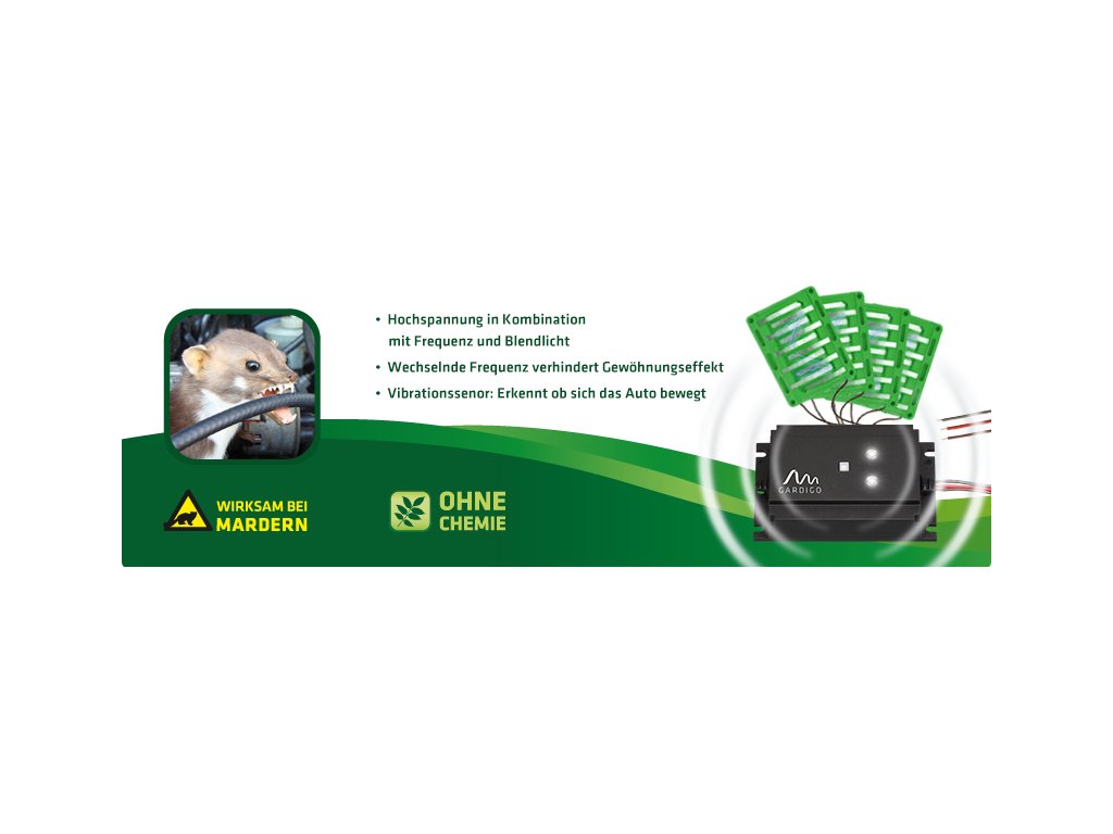 GARDIGO Ultrazvukový plašič odpuzovač kun PROFI ŠOK výboj + ultrazvuk + LED blesk do auta / 12 V / 40 m2