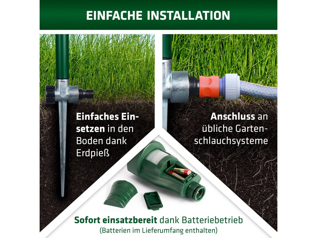 GARDIGO Bateriový odpuzovač plašič zvířat a ptáků proudem vody / 60 m2